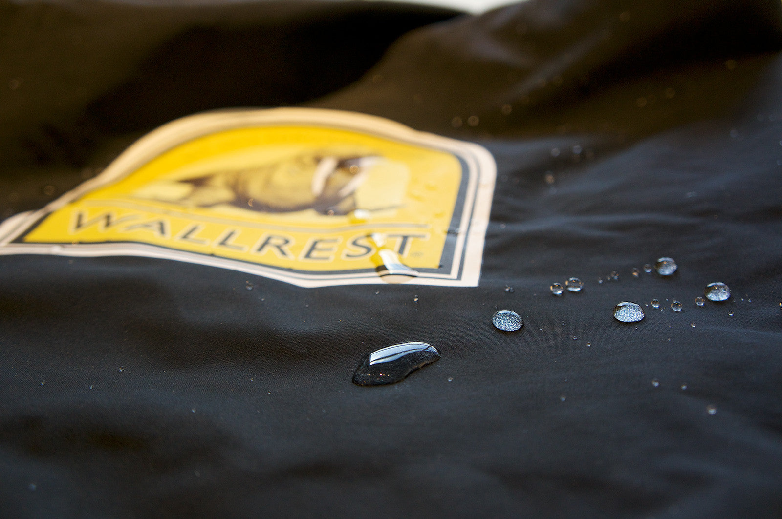 Wallrest uses a proprietary hydrophobic outer shell that repels water on contact. The DWR finish keeps water from sticking to the face fabric while the PU membrane keeps any pesky water droplets from penetrating.